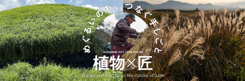 Since ancient times, Japanese have taken advantage of locally growing trees and plants in their daily lives, constructing homes from pillars and beams of cedar or cypress wood, thatching their roofs with susuki grass and yoshi reeds, and weaving mats from soft reeds for flooring. This exhibition focuses attention on the plants that support traditional Japanese architecture and the craft techniques that were developed, particularly from the point of view of plant science and architecture.