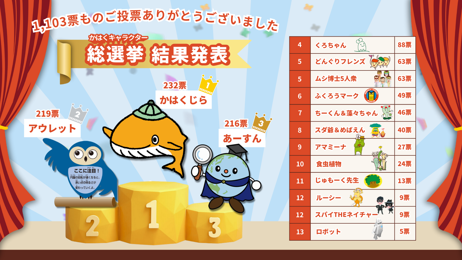 科学を文化に月間 かはくキャラクター総選挙 結果発表