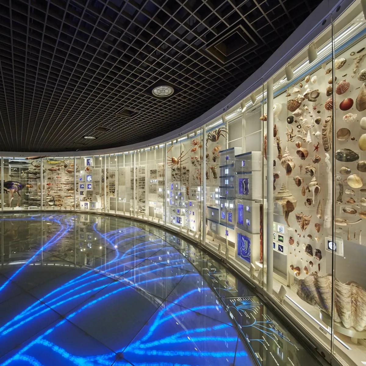 '지구생명역사와 인류'를 테마로 한 지구관에서는 지구의 다양한 생물들이 서로 깊은 연관을 맺으며 살아가는 모습, 지구 환경의 변동 속에서 반복되는 탄생과 멸종을 통한 생명의 진화, 인류의 지혜와 관련된 역사를 전시하고 있습니다.
