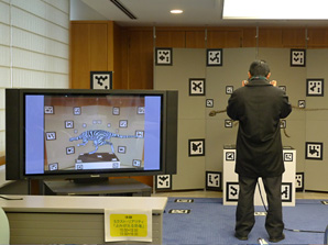 目前の小型恐竜の化石が、生きている姿に見える・・ミクスト・リアリティという革新的映像技術を体験してもらいました。