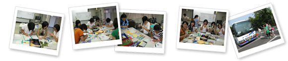4)葉っぱのクラフトを体験。どの葉を組み合わせようか・・みなさん工夫するのに一生懸命です。