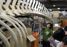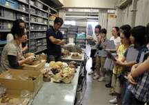 3班に分かれてスタッフの案内で収蔵庫を廻るツアーに出発です。研究者がそれぞれ担当の収蔵庫に待機していて、参加のみなさんに解説をしたり、標本紹介を行ったりしました。見学箇所は、人類標本庫/鳥類標本庫/古生物標本庫/鉱物標本庫/解剖プレハブ/DNAラボなどでした。