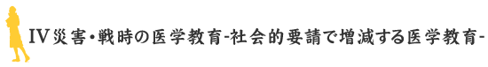 関東大震災、第二次世界大戦で軍医、医療要員はめざましい活躍をしたが、そのために医学教育制度が安易に変更された事情を語る。