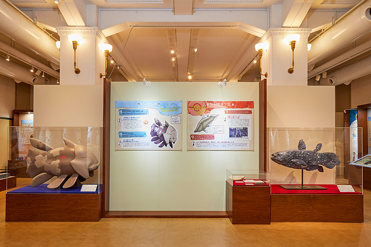 この展示は、「カセキポケモン」と私たちの世界で見つかる「化石・古生物」を見比べて、似ているところや異なっているところを発見し、古生物学について楽しく学んでいただくものです。