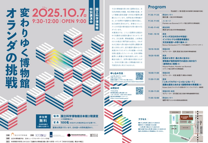 - ICOM日本委員会、オランダ文化遺産庁、アムステルダム芸術大学ラインワルトアカデミー、オランダ国立世界文化博物館