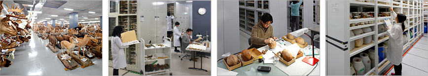標本収蔵施設のうち自然史標本棟 標本・資料棟には、動物剥製や岩石、人骨、植物などの標本・資料が収蔵されています。