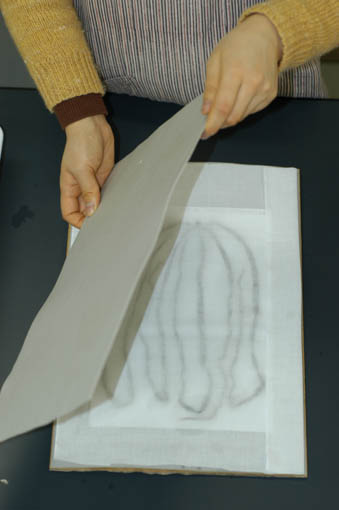B11. さらし布の上に吸水紙をのせる