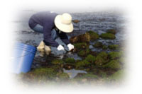 海藻を採集する方法には、打ち上げ藻拾い、磯採集、スノーケリング、スキューバ潜水、ドレッジなどがありますが、ここでは基本である磯採集について解説します。しかし、はじめて海藻採集に挑戦される方や泳げない方などは、まず干潮時の海岸に打ち上がる海藻を拾うところから始められることをおすすめします。