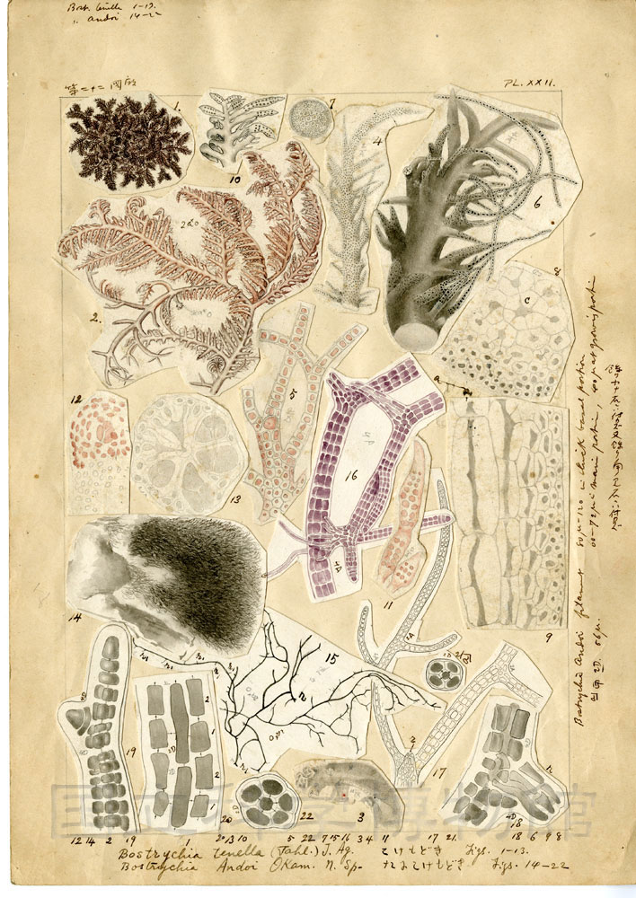Figs. 14-22: Bostrychia Andoi Okamura [=Bostrychia simpliciuscula Harvey ex J. Agardh]
