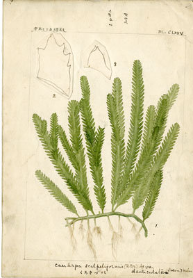 Figs. 1-3: Caulerpa scalpeliformis (R. Brown) Agardh var. denticulata (Decaisne) Weber-van Bosse [sensu Okamura = Caulerpa scalpelliformis (R. Brown ex Turner) C. Agardh var. scalpelliformis]