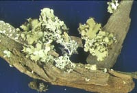 大きなスギの樹幹に着生する小形の葉状地衣類。オオツブミゴケに近縁であるが、裂片は小形(長さ0.5-1.5cm、幅2-8mm)。日本では、高野山、四国剣山および福岡県英彦山の3箇所から報告されているが、現在生育が確認されているのは高野山奥ノ院だけである。