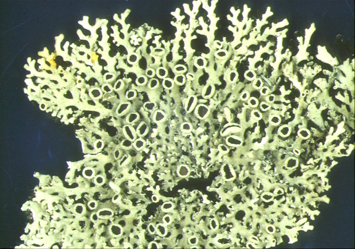 チヂレゲジゲジゴケに近縁で岩上生。地衣体は灰白色で裏面にも皮層を持ち未知成分を含む。粉芽はない。オ−ストラリア、雲南、日本に分布する。日本では和歌山県新宮で50年ほど前に一度採集されただけで、その後の記録がない。絶滅した可能性が高い。