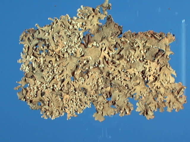 暖地の樹皮に着生する大形の葉状地衣類。地衣体は径10-15cm、裂片は幅10mm、表面は灰緑色で葉縁に1-3mmのシリアと粉末状の粉芽を持つ。アトラノリンとアレクトロン酸を含む。熱帯から温帯に広く分布するが、日本では四国以南と小笠原諸島に生育する稀産種である。
