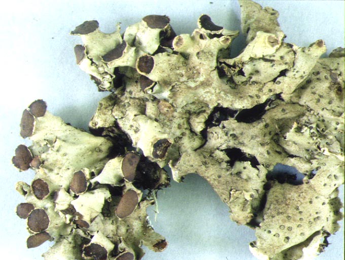 亜高山の針葉樹林内や北海道の低地の地上に蘚類と共に生える大形の葉状地衣類。共生藻は緑藻で地衣体表面は緑色、ゴマ粒ほどの褐色の頭状体がある、裏面は類白色で淡褐色の脈と偽根を持つ。子器の裏面には皮層を欠く。テヌイオリン、ゼオリンなどのトリテルペン類を多く含む。早池峰山、八ヶ岳、富士山、荒川岳などの針葉樹林帯の数カ所から報告がある。