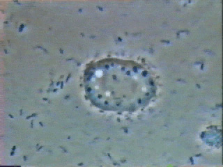 生長して大きくなった粘菌アメーバの動きがとまり、丸くなりました。