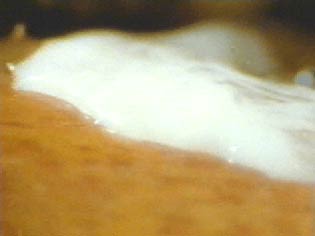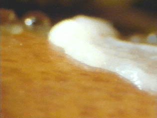 倒木上を移動するシロエノカタホコリの白い変形体