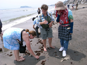 On the afternoon of August 5, 2009, about 70 phycologists collected many Japanese seaweeds on the beach of Kamakura. The phycologists were attendees for the International Phycological Congress (IPC9), which was held from August 2, 2009 through August 8, 2009 in Yoyogi, Tokyo. They made several sheets of algal dried specimens in the schoolhouse of Shichirigahama High School in front of the beach of Kamakura.