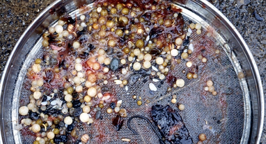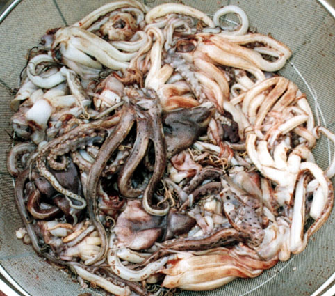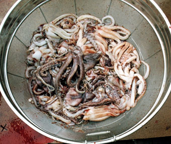 Contents of the third stomach of sperm whale caught off Hokkaido. (Photo
