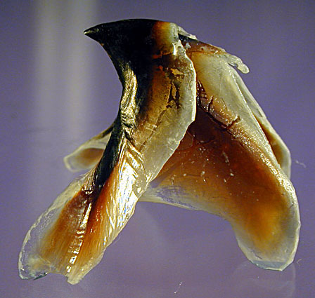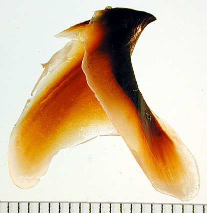 翼の張り出しは110度 嘴刃の延長は直線状で、翼刃は三角形。 |