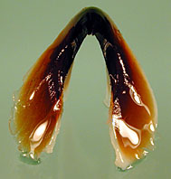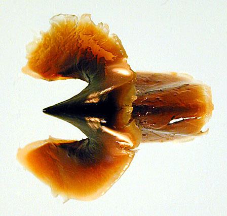 嘴刃と翼の接続部は約105度で張り出す。翼刃は硬化する。 |