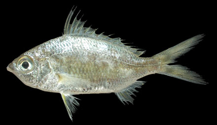 Body oblong, compressed; scales mostly absent on premaxillary groove; posterior tip of maxilla extending beyond anterior margin of eye; pectoral fins short, not reaching to anal fin origin; pectoral and anal fins yellowish. Indo-West Pacific.