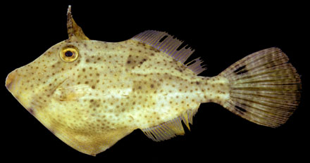 Ventral flap developed; pelvic terminus immovable; caudal fin longer than head length; body brown to gray with many dark brown spots larger than pupil; reaching to 45 cm. Eastern Indonesia and Northern Australia.