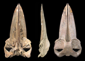 edeni の頭骨では上顎骨の上行突起が細く,広く露出している前頭骨上に上行突起の台座のように見える隆起が認められることである.この特徴は他のどのナガスクジラ属鯨類にもみられない.これらの骨学的知見は分子からの知見とともに,B. brydei,B.edeni およびB. omurai がそれぞれ別個の種であるとする我々の解釈に確かな裏づけを与えている.
