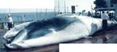 体長は12m以下であり,頭骨は比較的幅広く偏平である.上記の固有の形質のほか,Wada et al. (2003)に示した頭骨にみられるたくさんの形質状態の組み合わせをもつナガスクジラ属鯨類は,本種をおいて他にない.特に,本種では上顎骨の上行突起は後端に向かって幅広くなるが,B. edeni ではそれは全域にわたって細く,鼻骨や前上顎骨のために大きな空間を与えていること,また本種の前頭骨は頭頂部で狭い帯状部を露出させているに過ぎないが,B. edeni では前頭骨は上顎骨上行突起の後方とそれらの間に広く露出し,低いが目立った隆起をつくることなどが注目される.椎骨式と指節骨式はそれぞれ,頚椎(7) +胸椎(13) + 腰椎(12) + 尾椎(21) = 53,4手根骨と4中手骨のほかに指I-5,指II-7,指IV-6,指V-3である. 本種の外観はB. physalus (ナガスクジラ)に似ているが, B. brydei に(おそらくB. edeni でも)顕著に認められる副稜線は認められなかった.ヒゲ板の大きさ,形,色および枚数は B. physalus のものとは大きく異なり,最も長いヒゲ板の幅に対する長さの割合,1.22±0.15は南極海産のB. physalus の1.48±0.11よりもずっと小さい.ヒゲ板の色はB. bonaerensis (クロミンククジラ)のものとそっくりで,ヒゲ列の場所により異なり,左右不対称を示す.