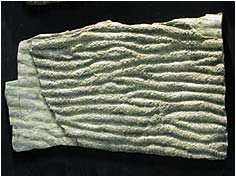 そこには、下の地層がたい積するときにできたリップル・マークとともに、上の地層の重さで生じた変形も見られます。これは二つの層の間にバイオマットがなければ起きない現象です。