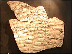 このS字状にうねった構造のある標本は、17億年前という途方もなく遠い昔のものです。この構造はかつて、ミミズのような動物がはい回った跡であるとか、藻類の化石であると考えられ、マンチュリオフィクスという学名さえ与えられました。しかし、この構造はリップル・マークの溝の部分にたまった泥にできた特殊なマッド・クラックなのです。