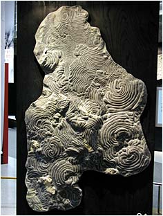これらの“巨大な指紋”はミステリーです。その詳しい形成過程は不明ですが、おそらく生物が関与したものではなく、石灰岩から二次的に晶出した炭酸カルシウム鉱物の模様であると思われます。縞模様は、シマウマ、指紋、そしてリップル・マークなど、生物、無生物を問わず、自然界によく見られる造形です。このような魅惑的な自然彫刻を、芸術と呼べないのでしょうか?