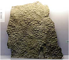 先カンブリア時代末のヴェンド紀から、硬い組織を持たない生物の化石が世界各地から見つかっています。特にオーストラリア南部のエディアカラの化石はよく知られ、そのためエディアカラ化石群と呼ばれています。この岩板に密集するクラゲを思わせる化石はネミアナと呼ばれています。その正体は未だにわかりません。