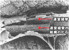 今のところ、確実にアンモナイトの軟体部といえる化石は連室細管内の組織化石以外には見つかっていません。アンモナイトの軟体部については、系統的に近いと考えられているイカやオウムガイから推定するほかありません。