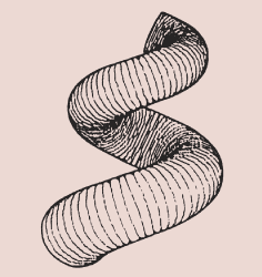 異常巻アンモナイトの中には、右巻き型と左巻き型という二型が知られています。両者は巻き方以外の点では全く区別ができません。雌雄ではないと考えられていますが、これが生物学的にどのような意味を持つかについてはまだ分かっていません。