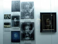 X線写真では、何重にも絵柄が重なっている。X線合成写真は、X線ネガフィルムとノーマルのポジフィルムを重ね合わせ、焼き付けた写真である。すなわち、画面最上層のエクステル像の明部を差し引いたX線写真ということになる。エクステルの像も、一個だけではなく、斜め右前方を見たもうひとつのエクステルが見える。画面の天地を逆にして観察すると、中央半分に額の禿上がった老人の顔面、左下の方に向かって肩から腕が出ている胸の側面、その肩の上に振り向いてこちらを見る顔面などが認められる。また、画面下辺に帽子をかぶった少女が見える。少なくとも、総計六個の形体が描かれていることになる。これこそ、まさに稽古画といえる。