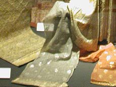 富や権威の象徴としての金や銀の輝きを衣服に表すために、糸状にして布に織り込んだり、刺繍する方法や、箔としてある種の接着剤を用いて布表面に貼る、箔押しの技法が行われていた。