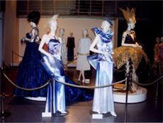 1986年から17回にわたって開催されている「文化女子大学服装学部ファッションショー」の作品の中から、光る素材を利用しイメージを表出した作品を展示している。