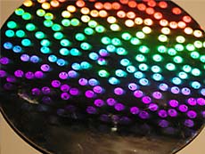 エンボスホログラムは大量生産に適しており、クレジットカードの偽造防止シール、雑誌やテレホンカードの装飾などで見ることができる。ホログラム独楽は、エンボスホログラムの作成技術を応用したものである。独楽が虹色に輝くのは、細かい縞のレリーフによって光が回折、干渉して分光するためである。