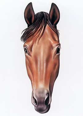 ウマは中型から大型の動物である。胴体はかなり太く短い。脚は長くまっすぐなように見えるが、胴体の近くは曲がっている。また、胴体に近い部分ほど太く短く、先端に近いほど細く長い。その結果、長距離を速く走るのに向いている。しかし、ジャンプは苦手である。 さて、ウマは立ったまま地面の草を食い、水も飲む。寝ころがっていては、まばらな草を食うのに不便であり、ライオンにおそわれたら危険でもある。そうすると、立ったままで口が地面に届かなくてはならない。頸と顔の長さの合計が前脚よりも長い必要がある。もともとウマの脚は長い。だからといって、頸だけを長くして、顔を短くすると、頸に負担がかかる。 そこで、顔を長くすることによって、咀嚼筋があって重い顔の後半部分と、草を食いちぎるだけの軽い口とを離してやれば、頸が短くなって負担が軽くなる。しかも、草を噛み砕くために臼歯が並ぶスペースのゆとりもできる。だから、ウマは馬面になったのである。 |