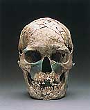 | 1940、50年代生まれのお父さんの世代と1960、70年代生まれの若者の世代、このわずか20〜30年の違いしかない世代を比べてみても、日本人の顔かたちはずいぶん違っている印象を受ける。とくに顎の形は、昔はがっしりと幅広かったものが、今は先がとがって華奢な感じに見える。これを考えれば大昔の日本人はさぞかしスゴい顔をしていたのではないかと思われるが、果たしてどうだったのだろうか。 | 日本列島には少なくとも数十万年前からヒトが住んでいたことが、石器などの証拠から明らかになっている。しかし、残念ながら、顔がわかるようなヒトの化石はせいぜい2万年前のものしか発見されていない。それでも、そういった化石やそれ以後の遺跡から出土した人骨を見ると、日本人は昔から同じ顔かたちをしていたのではないことがわかる。ここでは、過去2万年前から現在まで、どのように顔の形が変化してきたのかを見てみよう。なお、以下に示す復顔図はできるだけ直接・間接の証拠を念頭において描いたものではあるが、あくまでも想像であり、厳密なものではないことをお断りしておく。 |