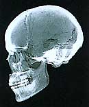 顔の骨では、噛むための筋肉(咀嚼筋)の力が強く加わる部分は、緻密質が厚くなり、海綿質にも太い針状の骨梁が発達し、頑丈な構造になっている。縄文時代人と生きている現代人のレントゲン写真を比べると、骨の構造は縄文人の方がはるかに頑丈なことがわかる。たとえば、前から見ると、下顎骨の下縁の緻密質は縄文人の方が厚く、文字通り緻密である。横から見ると、縄文人では上顎骨の前歯(切歯)の植わっている歯槽骨が上後方に向かって厚く三角形に広がっているが、現代人ではその部分の歯槽骨が薄く湾曲している。現代人では、硬い食物を咬み切ろうとしたら、歯槽骨が折れてしまいそうだ。