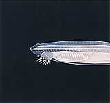 ちなみに、現実に知られている最古の脊椎動物は、5億2000万年以上前、カンブリア紀後期の無鰐類(表1)である。無鰐類には少なくとも単なる孔のような口と目が二つ、鼻孔が一つあった。餌を捕獲したり噛むための顎や歯はまだない。 |