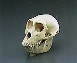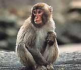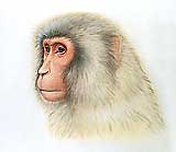 霊長類の形態的特徴の多くは樹上生活と関係している。樹上生活の採用によって起きた最大の顔面変化は、それまで比較的側方にあった目が正中方向に移動し完全に前面に並んだことであろう。これによって立体視が完璧になった。また、枝や果実など物をつかむ能力も発達し、脳が大型化した。逆に、鼻腔は縮小し嗅覚が鈍化するとともに顎や歯も縮小した。サルの例ときしてニホンザルの顔を示すが、イヌと比較すれば、これらの特徴の違いがよくわかるであろう。 |